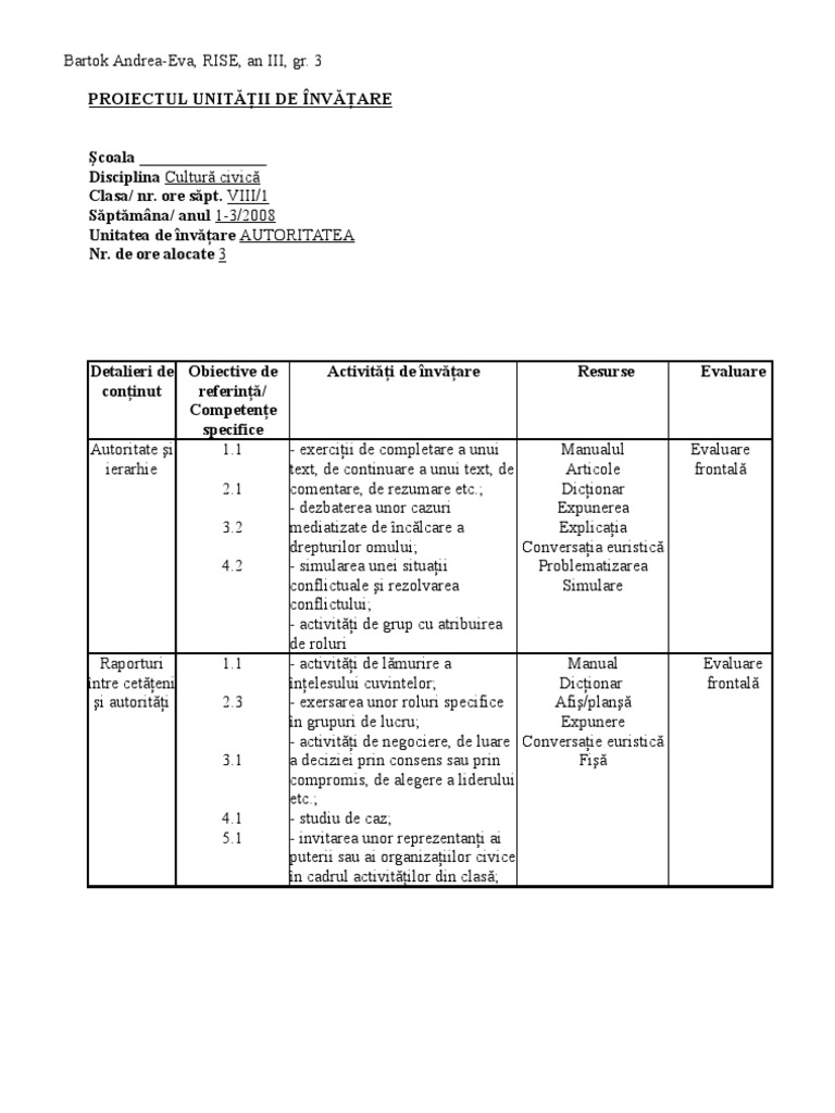 Model De Planificarede Unitate De Invatare Proiect