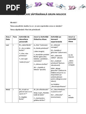 Planificare Saptamanala Conform Noului Curriculum Doc