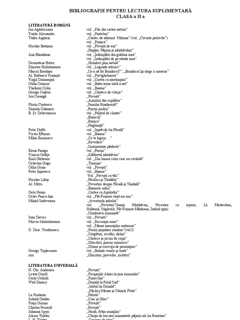Lectura Suplimentara Clasa A Ii A