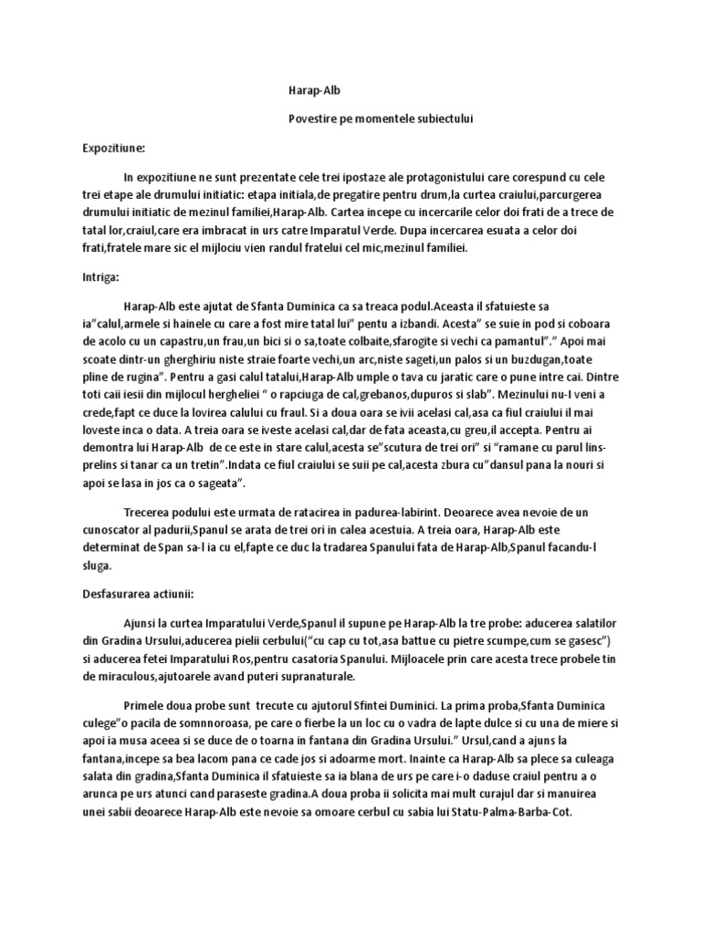 Www Referat10 Net Povestea Lui Harap Alb Momentele Subiectului