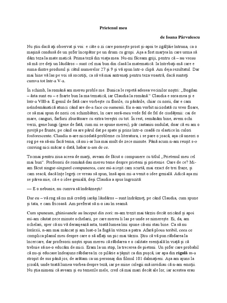 Prietenul Meu De Ioana Parvulescu Brainly Ro