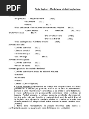 Tudor Arghezi Marile Teme Ale Liricii Argheziene