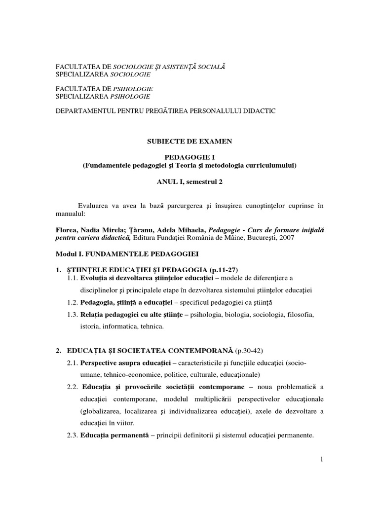 Subiecte De Examen Sem 2 Pedagogie 1