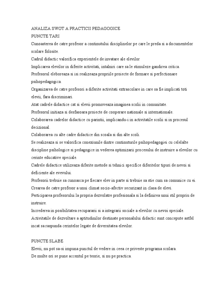 Anexa 2 Analiza Swot