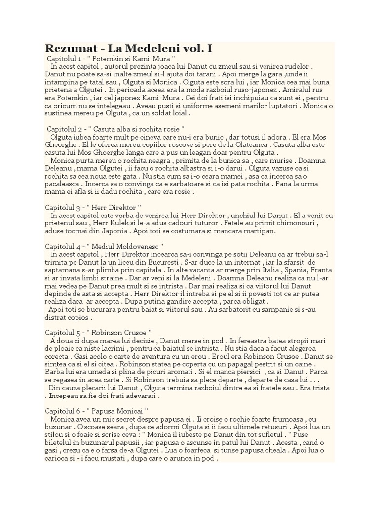Va Rogg Vreu Si Eu Un Rezumat La Medeleni Vol 1 Dar Nu Pe Capitole Rezumatul Sa Aiba 3 Pagini Dau Brainly Ro
