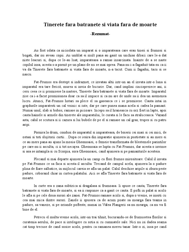 Rezumat Basmul Tinerete Fara Batranete Si Viata Fara De Moarte