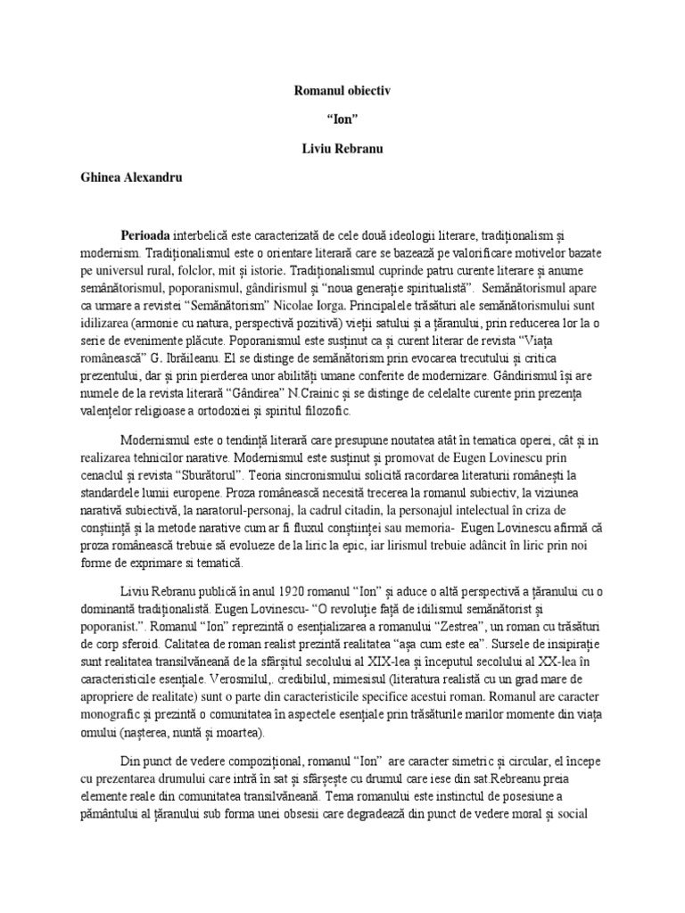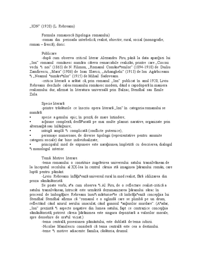 Doc Ion De Liviu Rebreanu Rezumat Violeta Stanciu Academia Edu