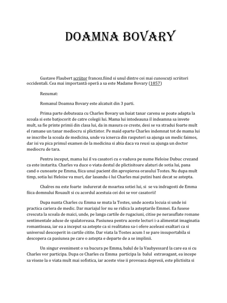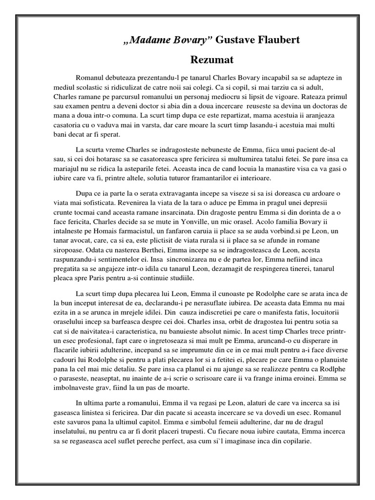 Doamna Bovary Rezumatul Operei