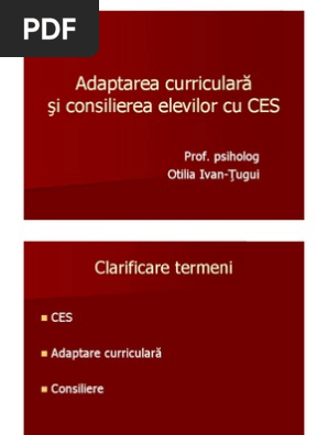 Adaptarea Curriculara Si Consilierea Copiilor Cu Ces