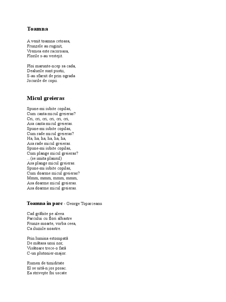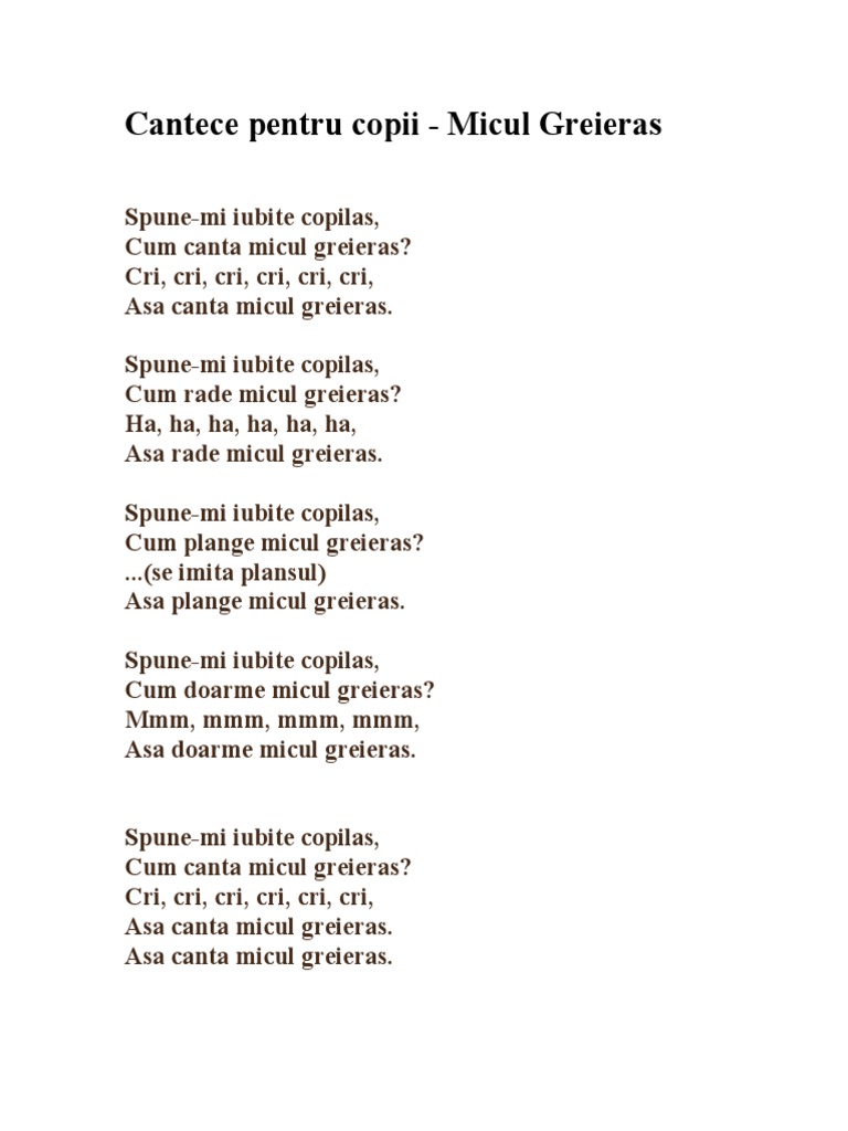 Poezii Si Cantece De Gradinita Greierasul