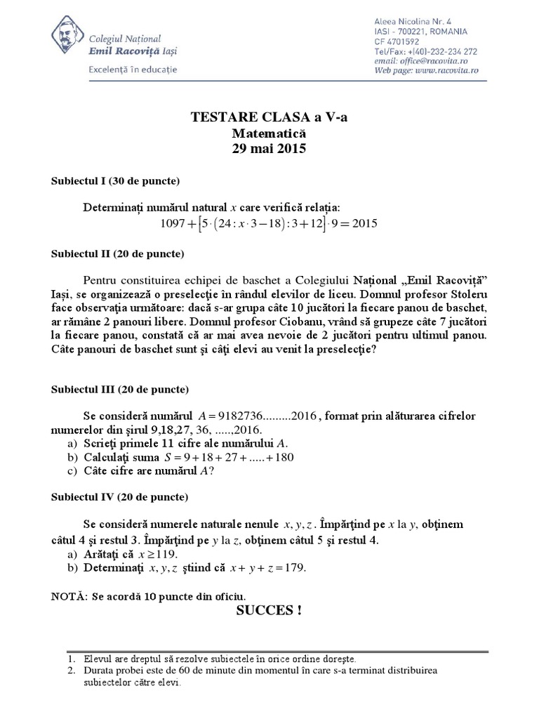 Subiecte excelenta matematica clasa 4. Prima probă a fost la limba română iar joi 4 mai elevii vor da testări la matematică. Matematica admitere in clasa de excelenta 2017 cl. Mate info ro 3143 model test de selectie centru de excelenta clasa a iv a pdf. Evaluare initiala centru de excelenta clasa a iv a.