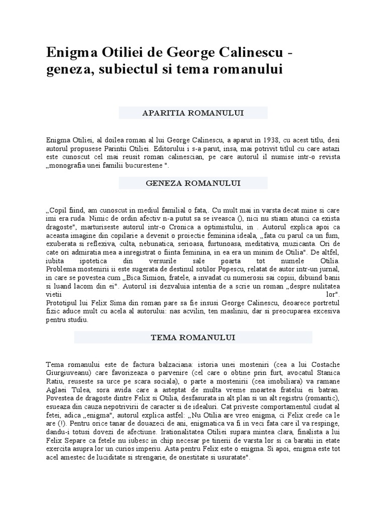 Doc Enigma Otiliei Calinescu Andreea M Academia Edu