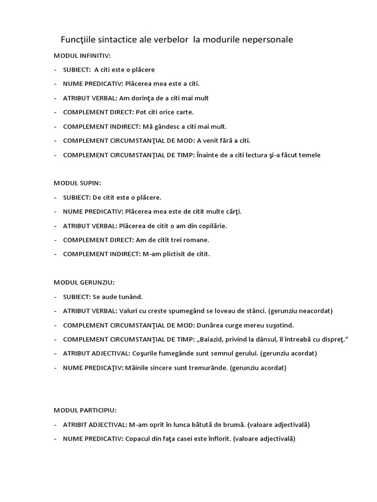 Funcţiile Sintactice Ale Verbelor La Modurile Nepersonale