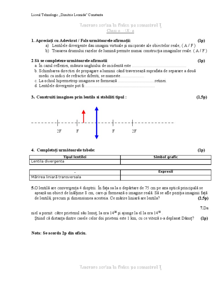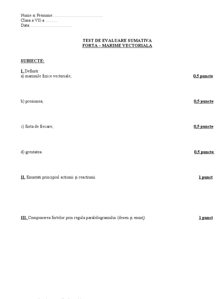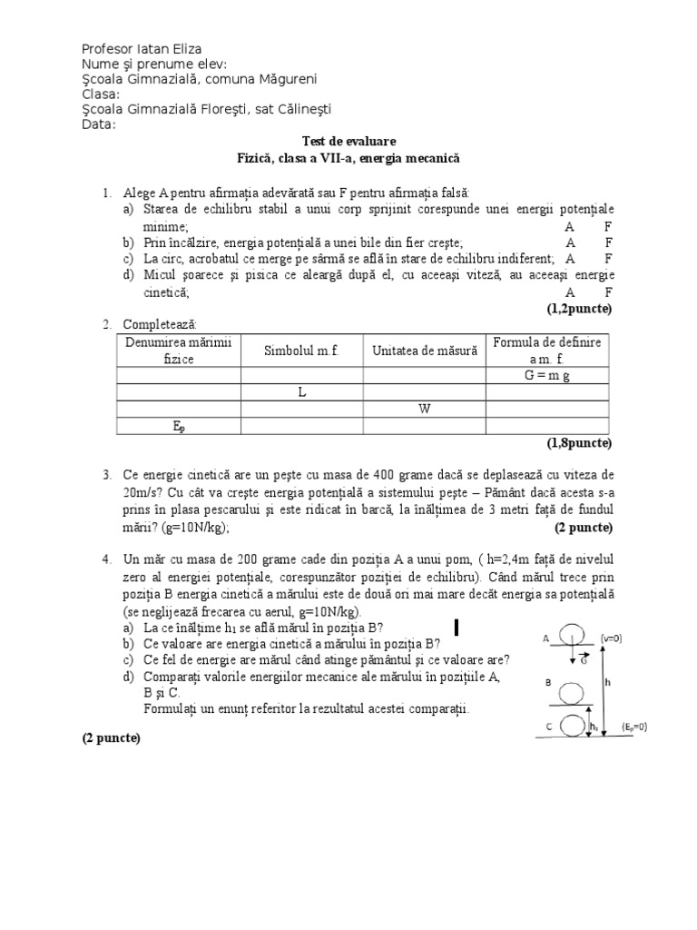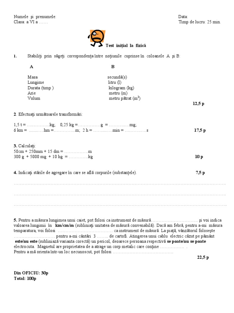 Va Rog Un Test Initial La Fizica Clasa 7 A Sem 1 Brainly Ro