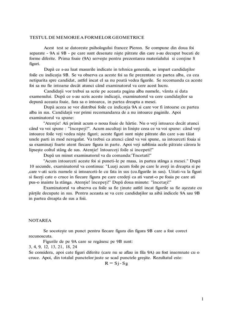 Testul De Memorie A Formelor Geometrice Pdf