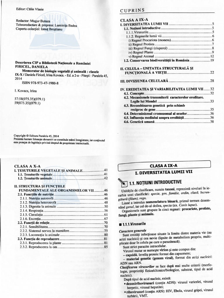 Memorator Biologie Vegetala Si Animala Clasele 9
