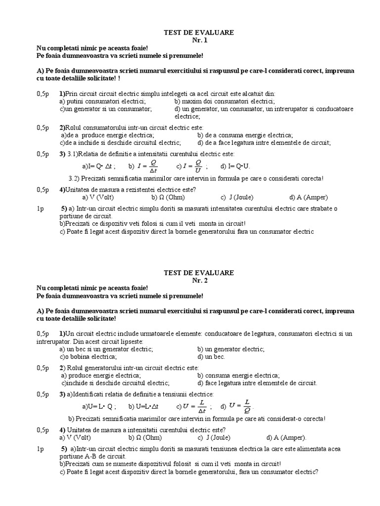 Test Final Curentul Electric