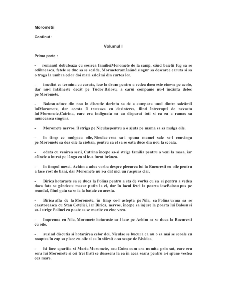 Pdf Morometii Rezumat Vol Dragos Comandaru Academia Edu