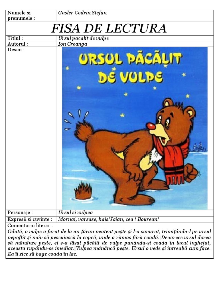 Ion Creanga Ursul Pacalit De Vulpe Doc