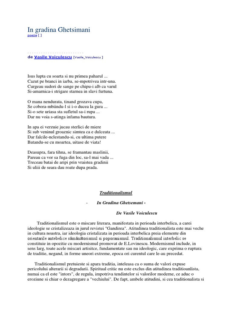 Referat In Gradina Ghetsemani De Vasile Voiculescu 327556 Graduo
